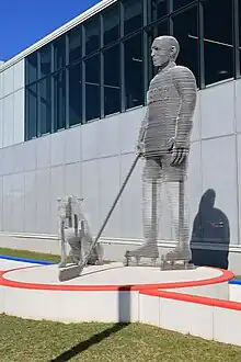 A statue by artist Frédéric Laforge of Malone with a bulldog, entitled Hommage à Joe Malone, was inaugurated on June 10, 2021, and is located at Place Jean-Béliveau at the ExpoCité in Quebec City. The statue pays homage to Malone's nickname, "Phantom Joe."[38]