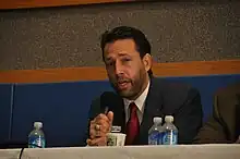 In 2008, while serving as Interior regional chairman of the Alaska Republican Party, he unsuccessfully tried to oust Randy Ruedrich as the state Republican Party chairman.[20][23] The Alaska Dispatch described Miller's effort as part of a power struggle between "the old guard versus the new Palin-led faction", reporting that Miller arrived at the state Republican Party convention accompanied by a security detail of four bodyguards.[32] Miller resigned his regional chairmanship and temporarily quit the GOP the day after the 2008 convention.[32]
