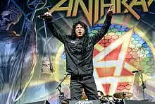 Joey Belladonna (born Joseph Bellardini; October 13, 1960) is an American singer, best known as the vocalist for thrash metal band Anthrax. He is also the vocalist and drummer of the cover band Chief Big Way and the vocalist for the cover band Beyond Frontiers. Belladonna has six Grammy Award nominations and is known for his wild, energetic stage behavior, and tenor vocal range.[1]
