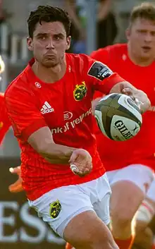 After much speculation, it was confirmed in May 2018 that Carbery would join Leinster's rivals Munster on a two-year contract ahead of the 2018–19 season.[11][12] He made his competitive debut for Munster on 1 September 2018, coming off the bench in their opening 2018–19 Pro14 fixture against the Cheetahs in Thomond Park, a game which Munster won 38–0.[13] Carbery made his first start for Munster on 14 September 2018, doing so against Ospreys in Irish Independent Park and scoring his first try for the province, as well as kicking five conversions in Munster's 49–13 win.[14]