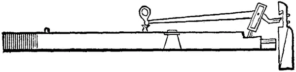 Stein's most important innovation, his piano action, was perfected around 1780.[4] This is the so-called Prellzungenmechanik or German action with an escapement mechanism. In this arrangement, each hammer was mounted on top of the key, with the head on the end closer to the player, a traditional arrangement in German pianos of Stein's day. The hammers were like small, asymmetrical levers, with the hammer head far from the fulcrum, and a small upward-facing hook ("beak") on the other side of the lever, much closer to the fulcrum. When the player depressed the key, the whole hammer assembly would rise. The beak would engage an escapement hopper attached to the keyframe. The escapement hopper pulled down on the beak as it rose, in turn causing the hammer (the other end of the lever) to fly upward and strike the string. The escapement hopper was hinged and sprung; this permitted the beak to push past it as the key sank back to rest position.[5]