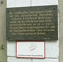 The story of Johann Friedrich Böttger is the theme of Gustav Meyrink's Goldmachergeschichten. His name is changed to Johann Friedrich Bötticher.