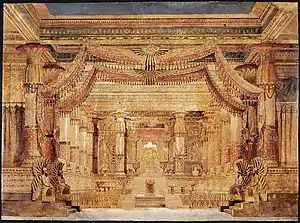 In 1863, he was appointed a decorative artist for the Vienna State Opera.[1] The following year, he became a partner in the studios of Carlo Brioschi. Two years later the Viennese Court Painter, Hermann Burghart, was added to the partnership, creating the firm of "Brioschi, Burghart und Kautsky, k.u.k. Hoftheatermaler in Wien", which employed dozens of carpenters, blacksmiths, mechanics and clerks in addition to their painters; among whom were Georg Janny, Leopold Rothaug, Ferdinand Brunner and Alfons Mucha. The studio received many orders from abroad as well as locally. Among their regular customers was the Metropolitan Opera in New York.