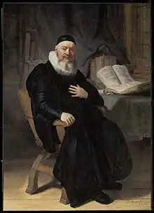 Johannes Elison (11 April 1581, Amsterdam, Holland – 19 August 1639, Norwich, Norfolk, England[1]) was a Dutch Reverend who was painted by Rembrandt Van Rijn in 1634. He enrolled in Leiden University at the age of seventeen in 1598.[2] He was the minister of the Dutch Reformed Church in Norfolk, England.[3] The portrait by Rembrandt was likely commissioned by Elison's son, Johannes Elison Jr., who was a wealthy merchant in Norwich.[4]
