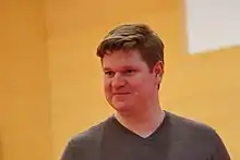 He has focused on singing in concert and in oratorios. His first concert as a soloist with the Idsteiner Kantorei was in 2011 Fauré's Requiem.[1] In 2014, he appeared at the Hochschule as Nardo in Mozart's opera La finta giardiniera, and at the festival Internationale Maifestspiele Wiesbaden in a concert performance of Domenico Mazzochi's La catena d'Adone.[2] In 2015, he sang the bass parts in Bach cantatas with the Deutscher Kammerchor and Kammerorchester Basel, conducted by Andreas Scholl who also sang two alto solo cantatas, at the great hall of the Alte Oper in Frankfurt.[3] They repeated the program on a tour to Switzerland and France,[2] including the Théâtre des Champs-Élysées in Paris.[4] Hill appeared at the Zelenka Festival in both Prague and Dresden in 2016,[5] singing as a member of the Kammerchor Stuttgart and a soloist in two works by Jan Dismas Zelenka, the Missa Dei Filii, ZWV 20, and the Miserere in C-minor, ZWV 57.[6] He performed the role of Pope Francis in the premiere of Peter Reulein's oratorio Laudato si' at the Limburg Cathedral in 2016, conducted by the composer.[7][8] The same year, he was a soloist in Ein deutsches Requiem by Johannes Brahms, performed by the Idsteiner Kantorei and the Nassauische Kammerphilharmonie, conducted by Carsten Koch, in St. Martin, Idstein.[9] He has been a regular soloist with the choir Junge Kantorei, performing in Schubert's Mass in G major and the role of Pilate in a scenic version of Bach's St. John Passion ("Die Freiheit, die Fesseln trägt" - Eine szenische Collage. J. S. Bach, Johannespassion, und der Prozess um die Märtyrer des Widerstandes vor dem Volksgerichtshof 1945) in churches in Frankfurt, Heidelberg and Marburg.[10][11] He was the bass soloist in Haydn's Theresienmesse, performed in the service on Christmas Day 2017 at St. Bonifatius, Wiesbaden, by Chor von St. Bonifatius and members of the Hessisches Staatsorchester, conducted by Gabriel Dessauer.[12]