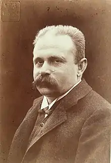Müller's adolescence and student years furnished him with a powerful but in many ways representative "fin de siècle" intellect.[11] In the end he would publish more than 40 books.[11] Soon he was filling 1,000 seat evangelical halls with his perorations, and in 1897 he teamed up with Heinrich Lhotzky to publish his own journal, the periodical "Blätter zur Pflege des persönlichen Lebens" ("Pages on taking care of the individual life").[10] It was renamed "Grünen Blätter" ("Green leaves/pages") in 1914[10] (and then withdrawn in 1941 due to paper shortages). Müller's many written pieces are today sometimes seen in the wider context of the so-called Judenmission (loosely "Mission to the Jews") as foreshadowing the political antisemitism that led to the Holocaust.[12][13] With his continuing high-profile public activity as a "religious intellectual", he campaigned for a new free Christianity, and it was this that provided a personal justification for his own freelance existence. His ideas were translated into several languages[6] and found a resonance with many educated fellow citizens, with the "unchurched educated" ("entkirchlichten Gebildeten"),[6][14] and with adherents of the Cultural Protestantism movement who were engaged in reinventing Christianity for a modern industrial age.[7]