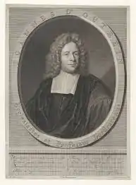 Johannes d'Outrein (Jan d'Outrein, 17 October 1662 in Middelburg – 24 February 1722 in Amsterdam) was a Dutch preacher, writer and author of evangelical theological works. He studied in Franeker, where he earned his doctorate in 1682.[1] He was a preacher in Oost-Zanen in 1685, Franeker in 1687, Arnhem in 1691, Dordrecht in 1703 and Amsterdam in 1708, where he died in 1722. He was a prominent exponent of the Cocceian movement,[2][3] and Friedrich Adolph Lampe was one of his disciples.[4] Outrein believed that God was "the alliance God of the Netherlands, of his chosen people, who are gathered there and live there".[5]