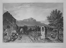 A mountain on the north bank of the Rhine near Mainz has been associated with the church and with winemaking since the Middle Ages, when the estate of Louis the Pious made 6000 litres of wine during the reign of Charlemagne. In 1100, Benedictine monks completed a monastery on the Bischofsberg ("Bishop's mountain), having identified the site as one of the best places to grow vines.[3] Thirty years later they built a Romanesque basilica in honour of John the Baptist, and the hill became known as Johannisberg ("John's mountain"). It was constructed on floor plans similar to that of its mother house, St. Alban's Abbey, Mainz. The monastery was a prime target for the Anabaptists in the German Peasants' War of 1525, and it was destroyed.