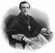On March 14, 1880, Watterson was appointed the second bishop of the Diocese of Columbus by Pope Leo XIII.[6] He received his episcopal consecration on August 8, 1880, from Archbishop William Elder, with Bishops William McCloskey and John Tuigg serving as co-consecrators.[6] During his 19-year-long tenure, Watterson increased the number of priests and schools in the diocese, founded two hospitals and the Pontifical College Josephinum in Columbus, and erected many new missions and parishes.[3] A strong proponent of temperance, he prohibited saloon owners from holding office in any Catholic organization in the diocese, and made all the children to whom he administered confirmation promise not to drink until they were 21.[3] He was the first Catholic bishop ever to speak at Ohio State University in Columbus[7]