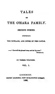 After the publication of Tales of the O'Hara Family, John began work on his novel The Boyne Water, a story of Protestant – Catholic relations during the Williamite War. He travelled back to Ireland, spending time in Derry and Belfast, to do research on the novel, which was published in 1826.[4] That same year, a second series of Tales of the O'Hara Family was published, containing the novel, The Nowlans.