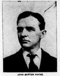 John Barton Payne (January 26, 1855 – January 24, 1935) was an American politician, lawyer and judge. He served as the United States Secretary of the Interior from 1920 until 1921 under Woodrow Wilson's administration.