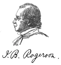 John Bolton Rogerson was born at Manchester on 20 January 1809, the son of James Rogerson by his wife, Elisabeth.[1] At the age of thirteen he left school and began work in a mercantile firm, but was afterwards placed with a solicitor. Law being distasteful, he opened in 1834 a bookshop in Manchester, which he carried on until 1841. The next few years were devoted to literary work, and in 1849 he was appointed registrar of the Manchester cemetery at Harpurhey. He was an amateur actor, was president for some years of the Manchester Shakespearean Society, and was for a short time on the staff of the Manchester Theatre Royal. In youth he had written a play in three acts, called The Baron of Manchester, which was produced at a local theatre. He also lectured on literary and educational subjects.[2]