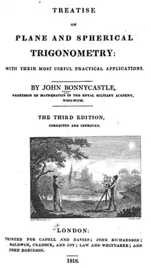 John Bonnycastle (baptized 29 December 1751 in Hardwick or Whitchurch, England – 15 May 1821 in Woolwich, England) was an English teacher of mathematics and author.