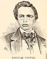 - Barclay Coppock, 22 or 23,[49]: 345 from Iowa like his brother,[13]: 24 safely reached Canada.[107] He died in the Union Army in 1861.