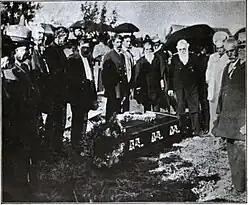 - In a single coffin, since the condition of the remains did not permit better identification, the remains of 10 of the raiders, including son Oliver Brown, died or executed 1859–60, were reburied on August 30, 1899.[57] The coffin was donated by the town of North Elba.[54][58][59]