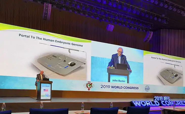 In April 2019 at the International Federation of Fertility Societies (IFFS)World Congress in Shanghai, China, Buster presented the preliminary results from the first Preimplantation Genetic Testing (PGT) using in vivo Embryos recovered by Uterine Lavage.[28]