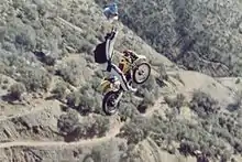 In 1986, using a portable ramp, he jumped from the Foresthill Bridge in California on a motorcycle then deployed his parachute, leaving the motorcycle to smash to pieces in the canyon below.[7]