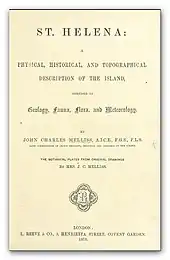 In 1875, he published the book for which he is best known: St. Helena: A Physical, Historical and Topographical Description of the Island, Including the Geology, Fauna, Flora and Meteorology. It was illustrated by his wife, Alice Elizabeth Louisa, née Stace, who was credited on the title page as "Mrs. J. C. Melliss", and on plates as "A. Melliss".