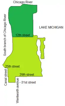 Coughlin was elected alderman as a Democrat[7] from Chicago's First Ward on April 5, 1892 despite having no prior experience in public service.[8][lower-alpha 1] Coughlin and his partner, fellow First Ward alderman Michael "Hinky Dink" Kenna, were known as the "Lords of the Levee", a district which was part of their ward. The Levee was known as being a vice-ridden section of Chicago and home to many saloons, gambling dens, prostitutes, pimps, and flop houses.