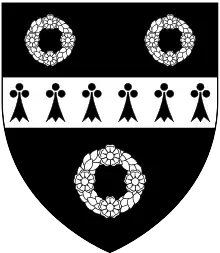 - ↑ arms of Deane impaling Drury, with Drury shown incorrectly with chief gules, should be vert