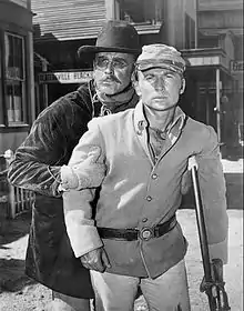For most of Dehner's television career, the genre he performed most often in was the Western, especially during the 1950s and 1960s. He was cast, at times repeatedly, as a guest star or major supporting character in over 40 Western series. These include The Adventures of Kit Carson, Cheyenne with Clint Walker, Zorro, Maverick (four appearances in varied roles, one of which was the episode "Shady Deal at Sunny Acres" with both James Garner and Jack Kelly), Dick Powell's Zane Grey Theatre, Tales of Wells Fargo with Dale Robertson, Bat Masterson, Rawhide, Bonanza, Law of the Plainsman, The Rebel with Nick Adams, Cimarron City, The Alaskans with Roger Moore, The Restless Gun, The Rifleman, Stagecoach West, The Texan, Black Saddle, Wagon Train, Wanted: Dead or Alive, Wichita Town, Stoney Burke, A Man Called Shenandoah, Branded with Chuck Connors, The Virginian, The Wild Wild West, The Big Valley with Barbara Stanwyck, and The High Chaparral with Cameron Mitchell.[36][59]