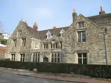 Born into a family whose wealth was largely founded on gunpowder production, John Evelyn was born in Wotton, Surrey, and grew up living with his grandparents in Lewes, Sussex.[2] While living in Lewes, in Southover Grange, he was educated at Lewes Old Grammar School,[3] refusing to be sent to Eton College.[4] After this he was educated at Balliol College, Oxford, and at the Middle Temple. In London, he witnessed important events such as the trials and executions of William Howard, 1st Viscount Stafford, and Thomas Wentworth, Earl of Strafford.