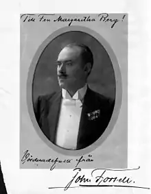 Carl Johan Jacob Forsell (6 November 1868 – 30 May 1941), known as John Forsell, was a prominent Swedish baritone, opera administrator and teacher of voice. He was the leading baritone of the Royal Swedish Opera (RSO) from 1896 to 1918, and thereafter sang roles periodically with the company until his last stage performance in 1938. From 1923 to 1939 he served as the director of the RSO. He also sang leading roles as a guest artist with opera companies internationally, drawing particular acclaim for his portrayal of the title character in Wolfgang Amadeus Mozart's Don Giovanni.[1]