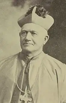 On May 14, 1898, Cunningham was appointed the second Bishop of Concordia by Pope Leo XIII.[4] He received his episcopal consecration on the following September 21 from Archbishop John Joseph Kain, with Bishops John Joseph Hennessy and Thomas Bonacum serving as co-consecrators, at Leavenworth.[4] Described as the "Diocesan Builder,"[2] Cunningham erected 54 churches, 22 schools, and three hospitals during his tenure.[3] He also dedicated the cathedral and laid the cornerstone for the Nazareth Motherhouse in 1902, and founded Hays Catholic College and St. Joseph's Orphanage in addition to several rectories and convents.[2]