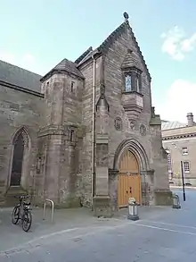 ![]() Halkerston Tower and the "Bride's Entrance" at St John's Kirk, Perth, looking southwest | |