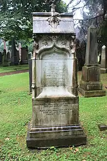 He died of congestion of the lungs at home in Edinburgh on 27 September 1923. He was buried in Dean Cemetery on Saturday 29 September. The grave lies towards the western end of the main east-west path, on its south side.