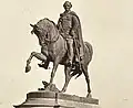 The Art Journal hailed Foley's equestrian statue of Henry Hardinge, 1st Viscount Hardinge as a "masterpiece of art" and "a triumph of British art".[12][2] William Michael Rossetti declared it to be "markedly at the head of British equestrian statues of any period".[2] Completed in 1857, the statue was the first large equestrian statue not to be conventionally cast but to be created by electroforming, building up layers of metal for each piece of the statue which were then joined together by electroplating.[12] The statue, which showed Hardinge's horse trampling a broken Sikh artillery piece, was exhibited outside the Royal Academy in London before it was shipped to Kolkata where it was erected at Shaheed Minar near Government House in 1859.[12][13] The statue was regarded as the most important equestrian statue to be created in Britain during the Victorian era and a bronzed plaster version was displayed at the London International Exhibition of 1862.[3] When in 1962, the Kolkata local authorities began removing British imperial monuments, the statue was returned to Britain.[12] Purchased for £35 by Baroness Helen Hardinge, the statue was erected at her home in Kent before, in 1985, it was relocated to the private garden of another Hardinge descendent near Cambridge.[12]