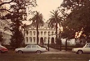 Toole returned home in 1959 to spend a year as assistant professor of English at the University of Southwestern Louisiana (USL), now renamed the University of Louisiana at Lafayette. Joel L. Fletcher, a close friend, noted, "Ken has a real gift for mimicry and a refined sense of the absurd ... the English faculty at USL, which is divided into several camps of war, both fear and court Ken because of his biting comic talent."[42] This year is generally considered one of the happiest of his life.[43] While at USL he rented a dilapidated apartment from an elderly and eccentric widow on Convent Street.[44] Toole described the apartment as a "Conradian metaphor" to friends.[44]