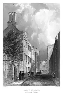 John Le Keux, engraved view of Gonville and Caius College, Cambridge from the street, after Jonathan Anderson Bell