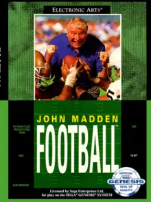 John Madden Football, released as John Madden American Football in Europe, is an American football video game released by Electronic Arts.[1] Loosely based on the 1988 video game of the same title, it was the first entry in what eventually became the yearly Madden NFL series on home consoles, initially released for the Sega Genesis in 1990. It is sometimes called Madden '90 or Madden '91 to distinguish it from subsequent entries in the series.[2][3]
