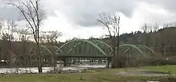 The John McLoughlin Bridge is a tied-arch bridge that spans the Clackamas River between Oregon City and Gladstone, Oregon, in the northwest United States. It was designed by Conde McCullough, and named for Dr. John McLoughlin.