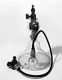 The apparatus later found another purpose, as modified versions were used to administer ether in some of the earliest experiments with general anaesthesia.[4] In 1846 the dentist James Robinson used a device incorporating the bottom of a Nooth apparatus to deliver general anaesthesia for the first time in Britain;[8] not long afterwards, Peter Squire, working with Robert Liston, devised an improved inhaler based on Robinson's design, which was successfully used to anaesthetise a patient during an amputation. These devices quickly fell out of favour, however, because they were fragile and awkward to use.[9]