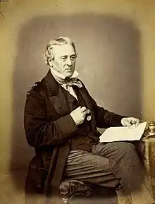 - ↑ For example his vote against the 1859 motion of no confidence which ended the second premiership of Lord Derby and led to the return of Palmerston as prime minister led to him being listed by (even Manchester) newspapers as one of the "English Liberals who voted with the government" - "The Ministerial Crisis". Manchester Courier and Lancashire General Advertiser. 18 June 1859. p. 10.