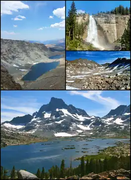 At the crest of Donahue Pass, the trail enters Inyo National Forest and the Ansel Adams Wilderness. The trail passes Thousand Island Lake, Garnet Lake, and a number of smaller lakes. The trail continues into Devils Postpile National Monument, where there are a number of opportunities to resupply or exit the trail. Devil's Postpile is located a short distance from the trail.[3]