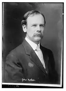John Nolen (June 14, 1869 – February 18, 1937)[1] was an American landscape architect, planning consultant, founding member of the American City Planning Institute and a writer.[2] Born in Philadelphia, Pennsylvania, Nolen was orphaned as a child and placed in Girard College. After he graduated first in his class in 1884, he worked as a grocery clerk and secretary to the Girard Estate Trust Fund before enrolling in the Wharton School of Finance and Economics at the University of Pennsylvania in 1891. Nolen earned a Ph.B. in 1893, and for the next ten years worked as secretary of the American Society for the Extension of University Teaching. He married Barbara Schatte in 1896.[3]