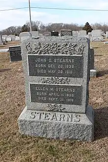 Stearns died on May 26, 1910, at the age of 72, at his home near Whiteford, Maryland. He was buried at Slate Ridge Cemetery.[6]