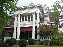 Built in 1906, this historic structure is a large 2+1⁄2-story, square brownstone dwelling that was designed in the Colonial Revival style. It has a slate-covered hipped roof with gable dormer, and features a colossal balconied porch with paired Corinthian order columns. Also located on the property is a contributing wood-frame garage.[2]