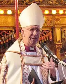 On 11 December 2006 it was announced that Pritchard would become the 42nd Bishop of Oxford. Having taken office at his confirmation-of-election in London on 23 March 2007, he began his ministry in the diocese on 8 June 2007 after a service of inauguration at Christ Church Cathedral, Oxford.[6] In 2008, he supported the application by Muslims in Oxford to broadcast the adhan from the minaret of a mosque. As a result, he received hostile comments and letters of complaint.[7][8][9]