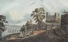 He was born in Cheshire about 1750, and practised in Manchester, London, and Preston as a landscape-painter in both oil and watercolour. Although he gained the name of the ‘Manchester Wilson’, his works in oil are opaque, flat, and ineffective. His works in watercolour, though in the light and washed style then practised, are well drawn and interesting.[1] The British Museum possesses three of his watercolour drawings, all of which are landscapes with figures, and there is a cleverly drawn landscape by him in grey faded tints at South Kensington. There is a landscape in oils in the Walker Art Gallery, Liverpool, by Rathbone, and two hang in the Peel Park Art Gallery, Salford. Between 1785 and 1806 Rathbone exhibited forty-eight landscapes at the Royal Academy and two at the Society of Artists. He also exhibited three landscapes at the exhibition of the Society of Artists in Liverpool in August 1774. Rathbone died in 1807.[1]
