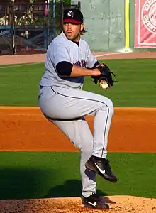 ![]() Rheinecker pitching for the Oklahoma RedHawks in 2006 | |