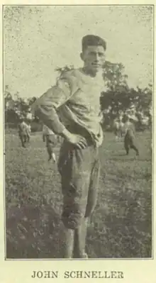 Schneller was born on November 1, 1911, in Neenah, Wisconsin.[1] He attended the University of Wisconsin on a basketball scholarship, but upon arriving on campus was recruited to play football. He then played as a fullback and end, earning All-American Honorable Mention in his junior year.