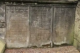 He died at his son's house, 21 Rutland Square, on Christmas Eve 24 December 1849. He is buried nearby in St Cuthbert's Churchyard at the west end of Princes Street Gardens.[7] The grave lies attached to the outer north wall of the church.
