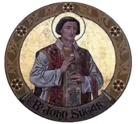 One or more of the preceding sentences incorporates text from a publication now in the public domain: Herbermann, Charles, ed. (1913). "Venerable John Sugar". Catholic Encyclopedia. New York: Robert Appleton Company. - ↑ Trust, National. "The Blessed John Sugar (1558-1604. A Catholic martyr, beatified in 1987. 342550". www.nationaltrustcollections.org.uk. Retrieved 15 August 2022.