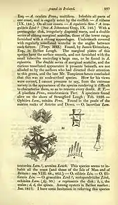 - ↑ James Townsend Mackay, 1836Flora hibernica comprising the flowering plants, ferns, Characeæ, Musci, Hepaticæ, Lichenes and Algæ of Ireland, arranged according to the natural system with a synopsis of the genera according to the Linnæan system. Dublin, W. Curray jun. and company, 1836 pdf