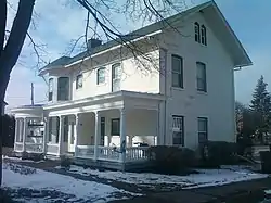 Built in 1871, the home is one of the oldest surviving buildings in Davenport's upper Main Street area—if not the oldest. A Victorian Greek Revival design with turn-of-the-century neoclassical modifications, the house was reportedly "the most commanding structure in the neighborhood" at the time of construction.[3] The main façade of the house faces a large yard to the south. It originally featured a single-story projecting window bay beside the main entrance.[2] Sometime between 1892 and 1910 a two-story semi-circular bay and a porch that followed the bay was added. The two-story house is composed of brick and sits on a stone foundation. The addition is composed of wood construction.