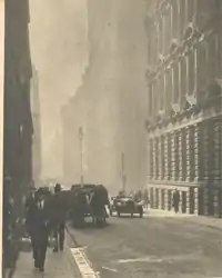 A Melbourne street scene on a business day in 1921 shows the transition from horse and cart to the early motorcar.
